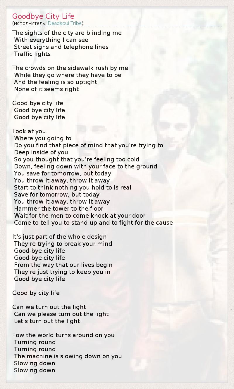 А как ты думаешь, о чем песня "Goodbye City Life" ?