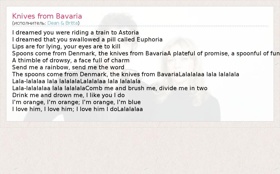 А как ты думаешь, о чем песня "Knives from Bavaria" ?