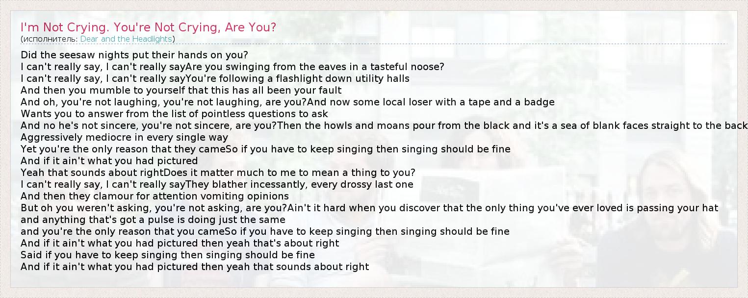 А как ты думаешь, о чем песня "I'm Not Crying. You're Not Crying, Are You?" ?