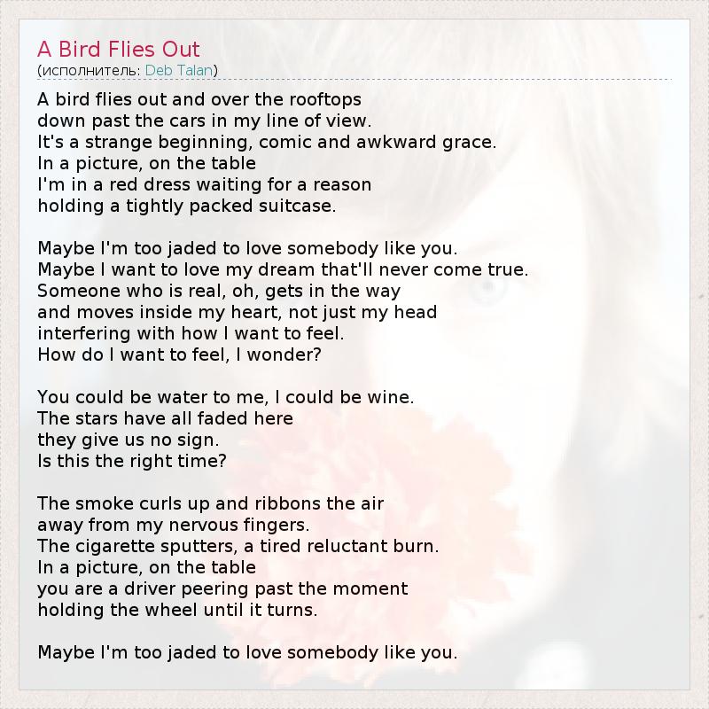 А как ты думаешь, о чем песня "A Bird Flies Out" ?