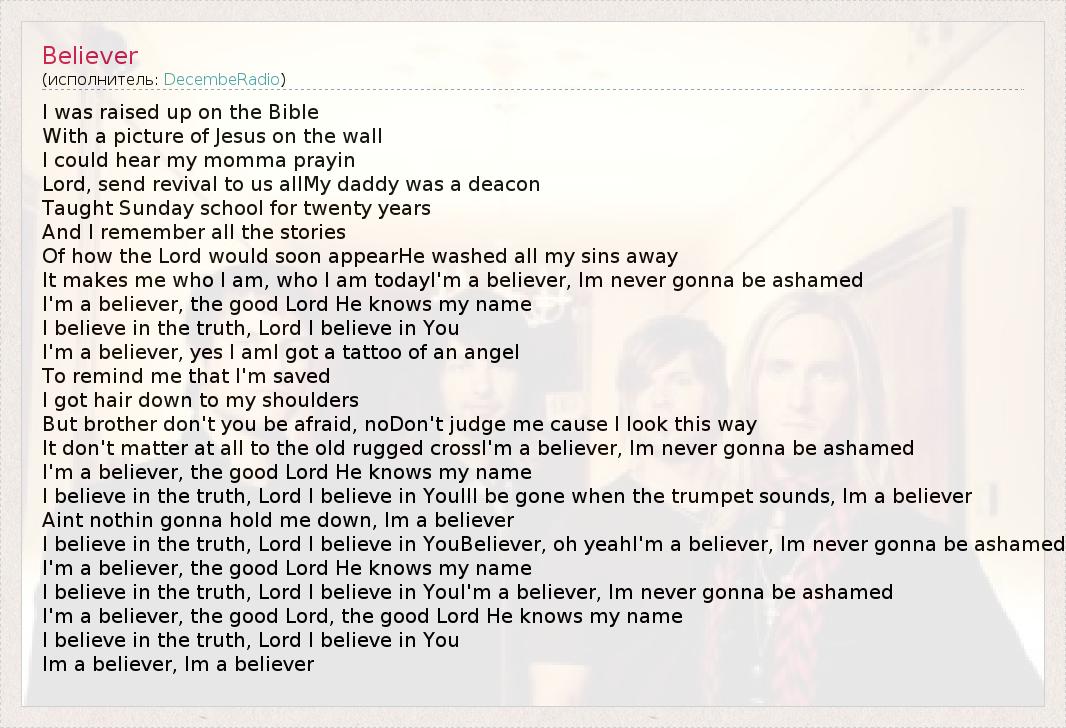 I believe in the truth, Lord I believe in YouI'm a believer, Im never gonna be ashamed