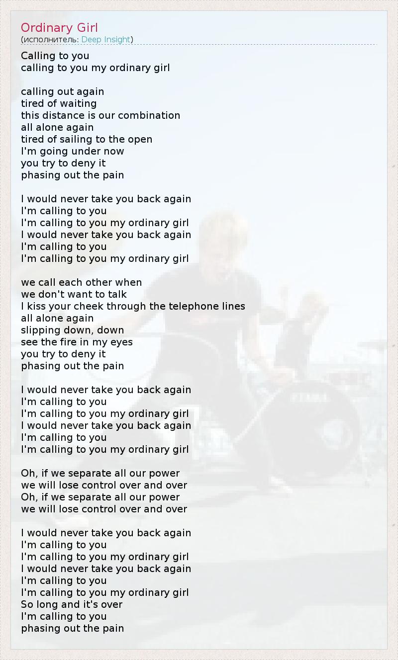 А как ты думаешь, о чем песня "Ordinary Girl" ?