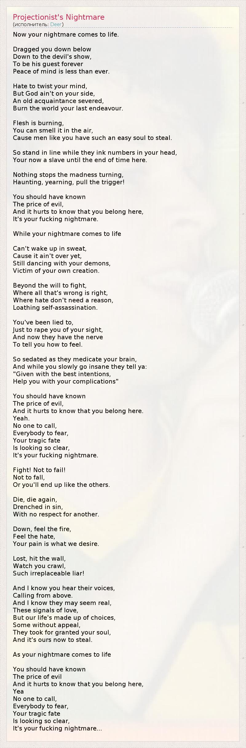 ГлавнаяИсполнителиDeerProjectionist's Nightmare