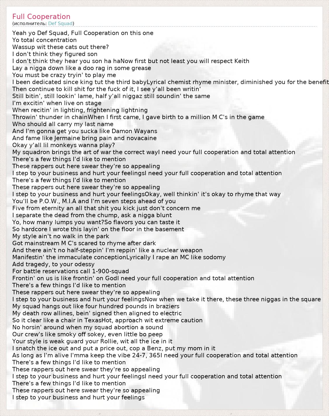 А как ты думаешь, о чем песня "Full Cooperation" ?