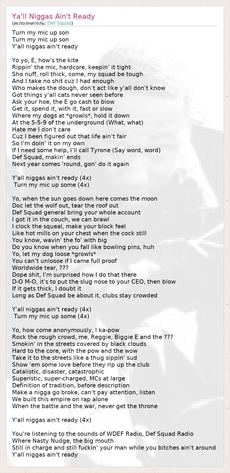 А как ты думаешь, о чем песня "Ya'll Niggas Ain't Ready" ?