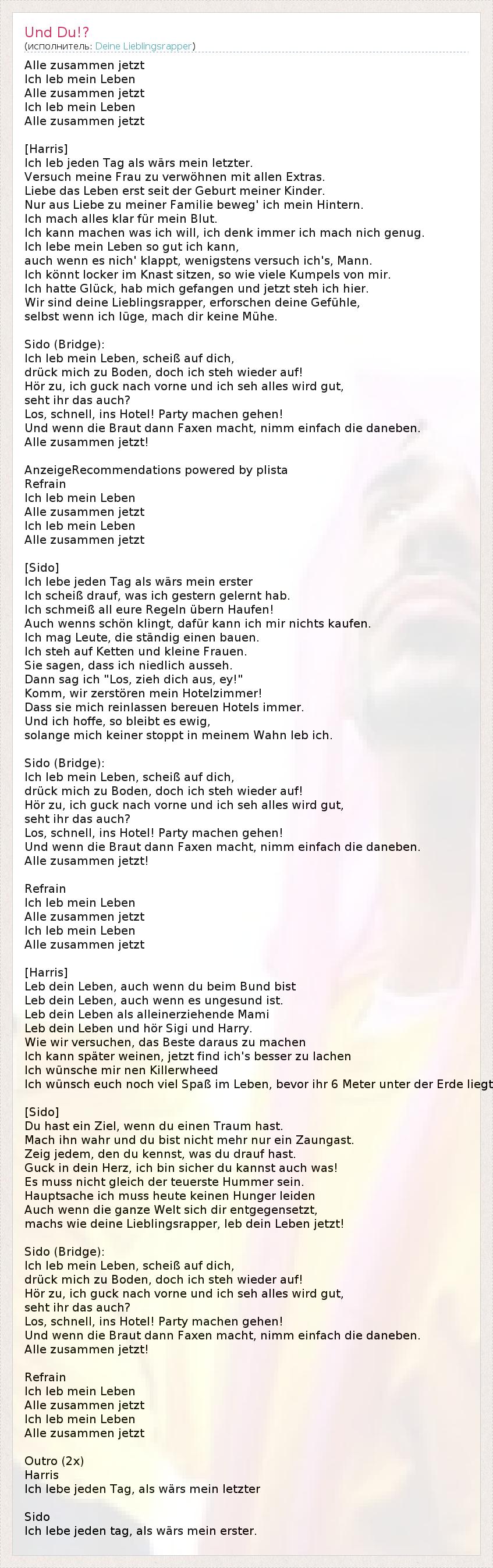 А как ты думаешь, о чем песня "Und Du!?" ?