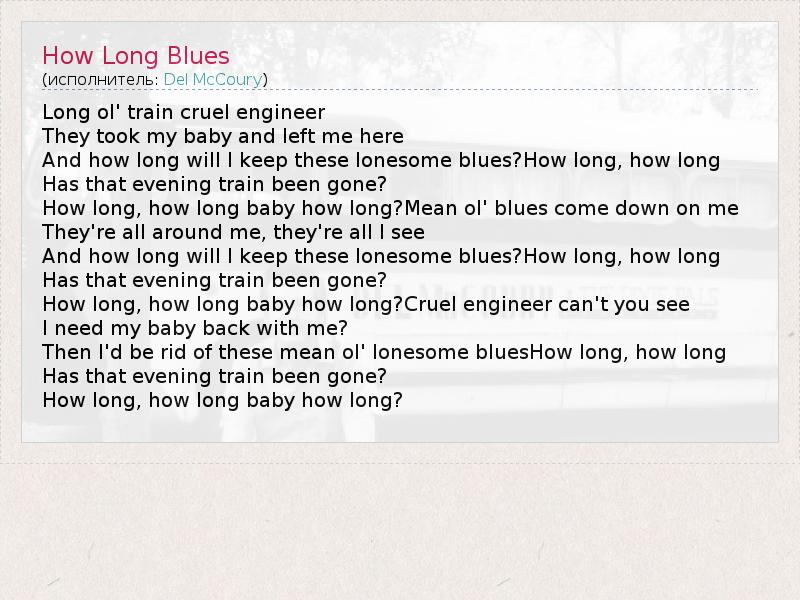 А как ты думаешь, о чем песня "How Long Blues" ?