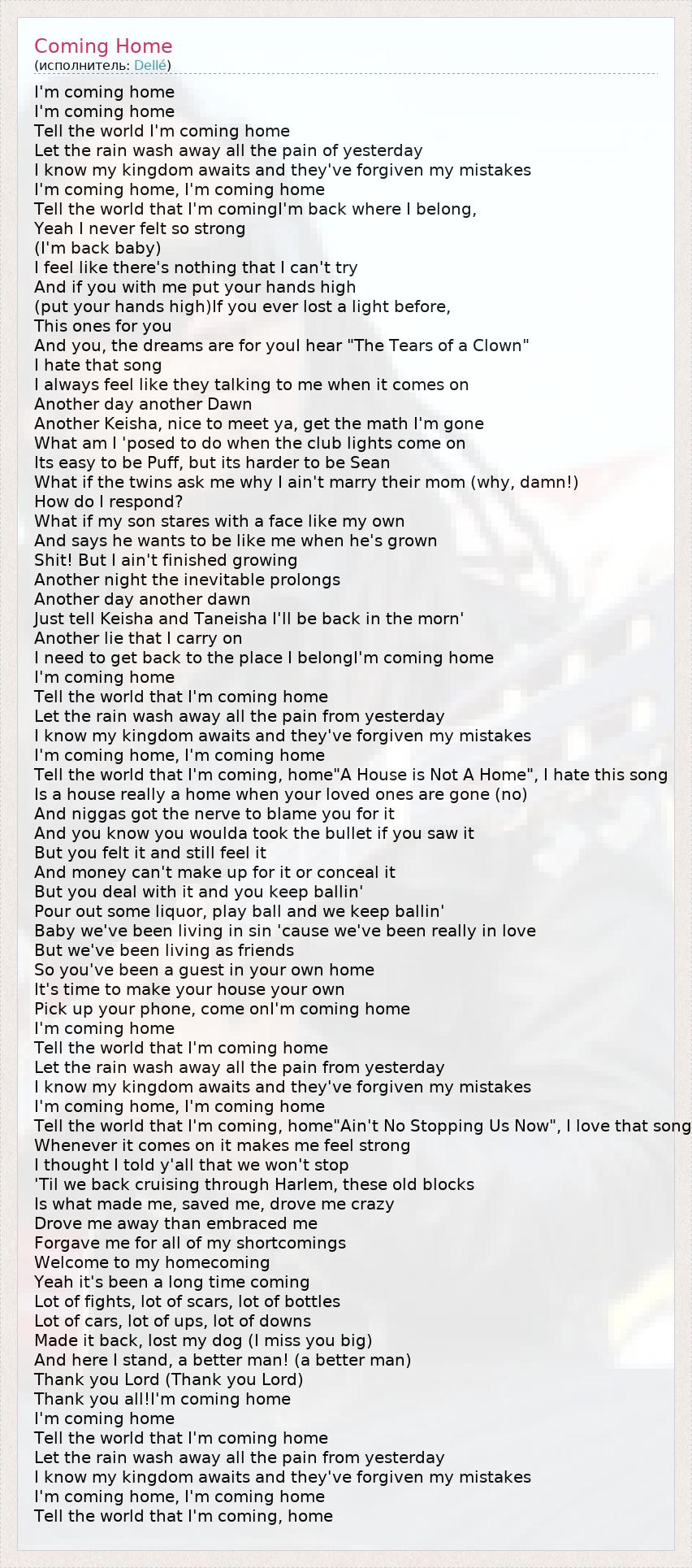 I'm coming home, I'm coming home
