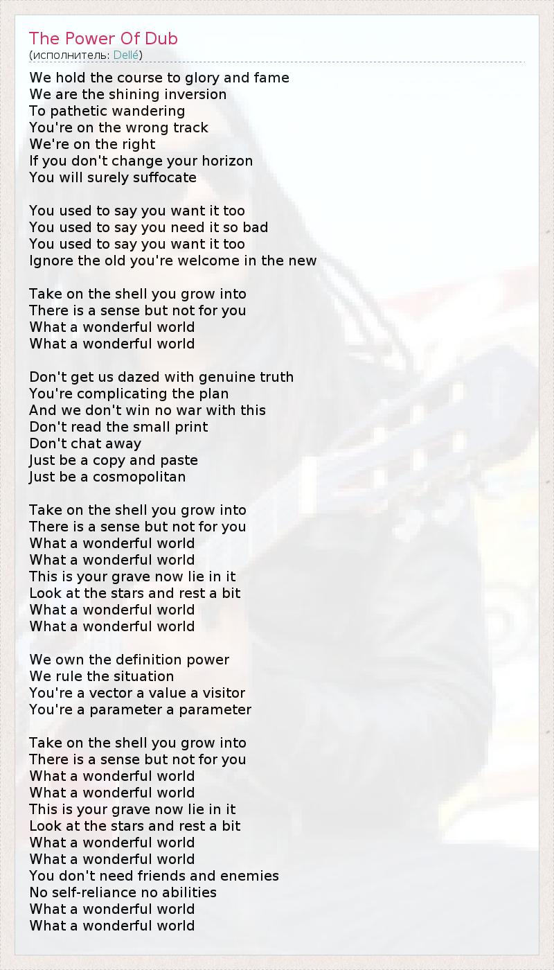 А как ты думаешь, о чем песня "The Power Of Dub" ?