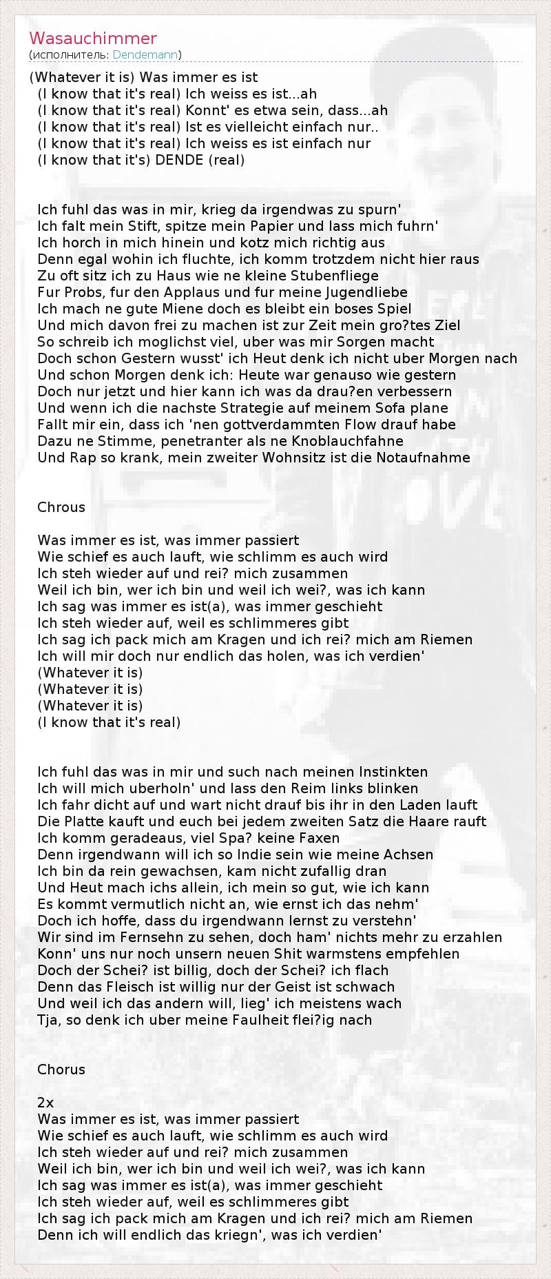 А как ты думаешь, о чем песня "Wasauchimmer" ?