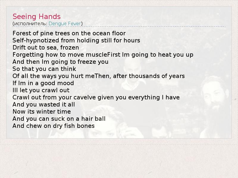 А как ты думаешь, о чем песня "Seeing Hands" ?
