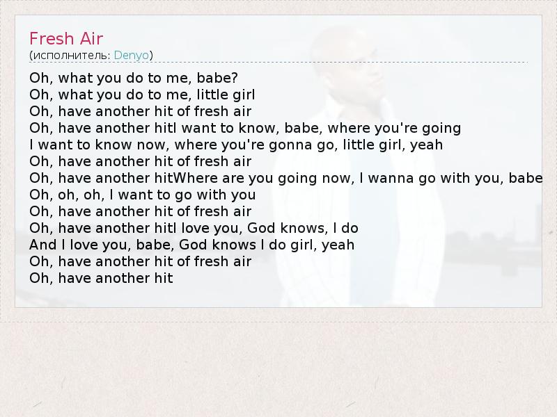 А как ты думаешь, о чем песня "Fresh Air" ?