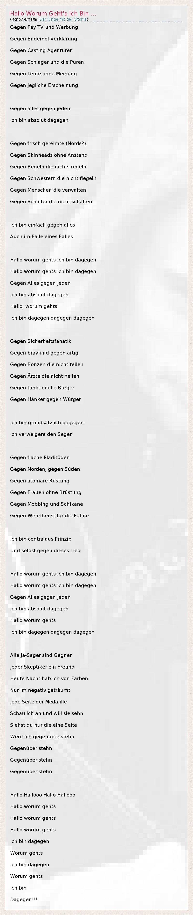 А как ты думаешь, о чем песня "Hallo Worum Geht's Ich Bin ..." ?