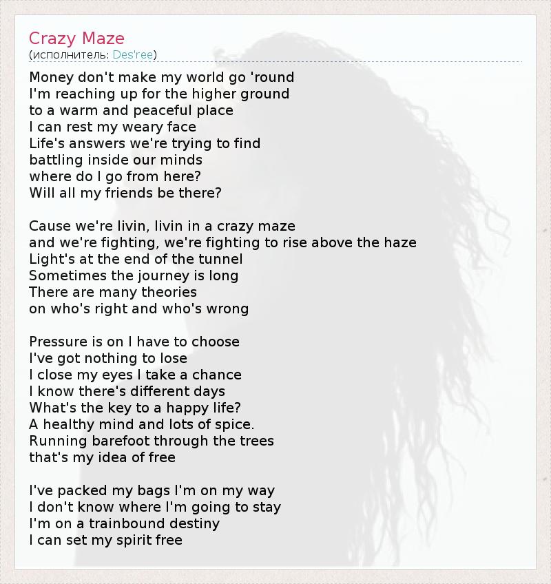 А как ты думаешь, о чем песня "Crazy Maze" ?