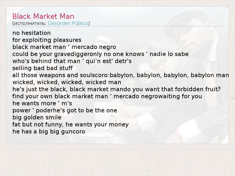 А как ты думаешь, о чем песня "Black Market Man" ?