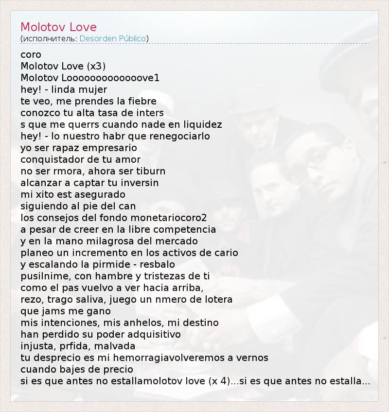 А как ты думаешь, о чем песня "Molotov Love" ?