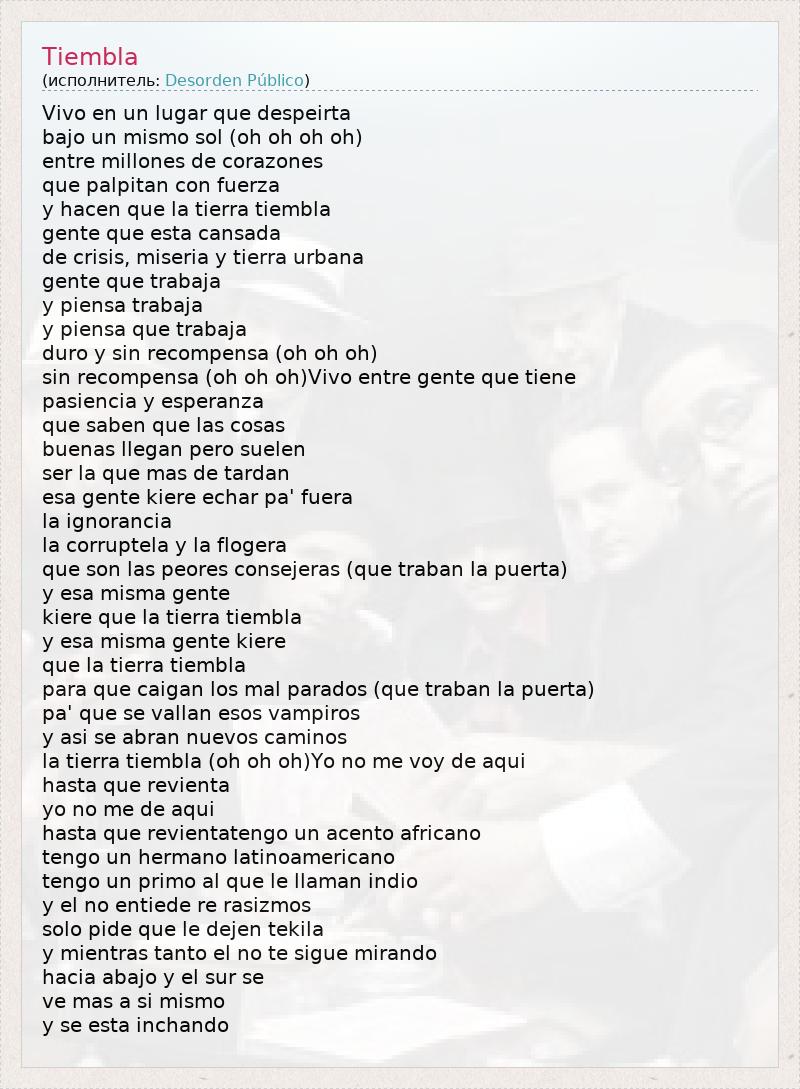 А как ты думаешь, о чем песня "Tiembla" ?