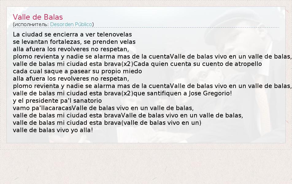 А как ты думаешь, о чем песня "Valle de Balas" ?