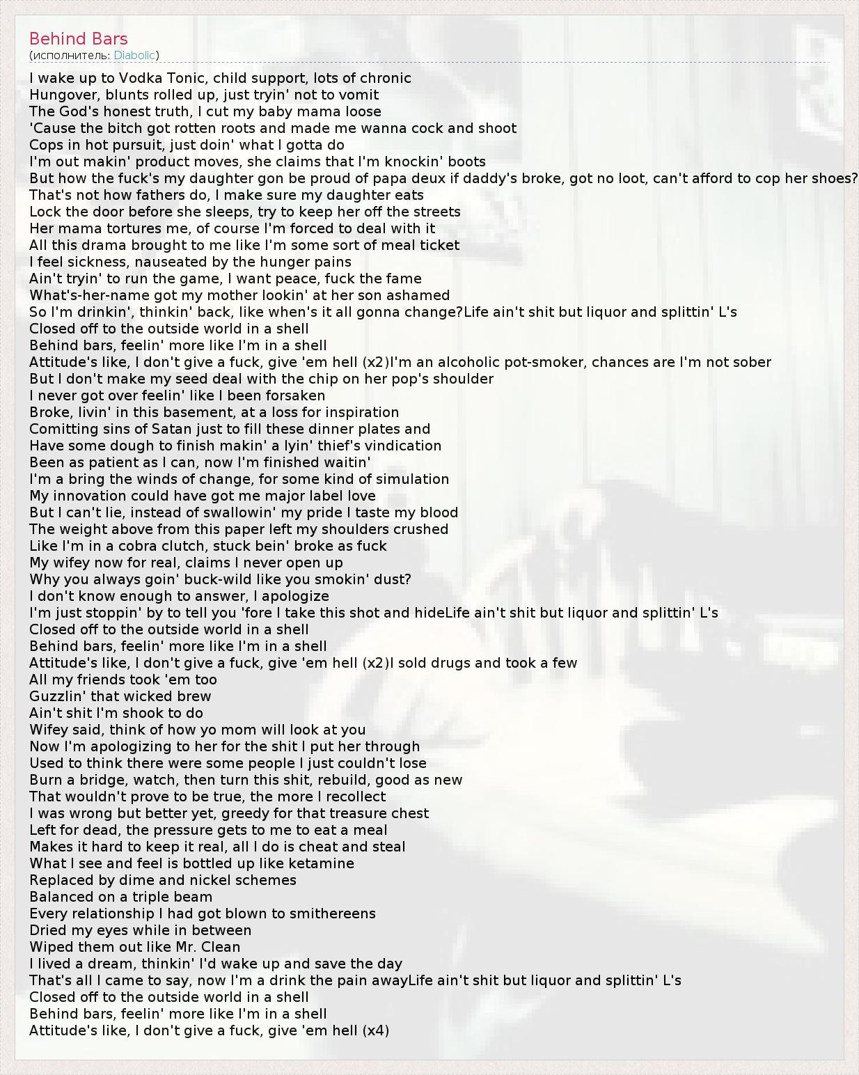 А как ты думаешь, о чем песня "Behind Bars" ?
