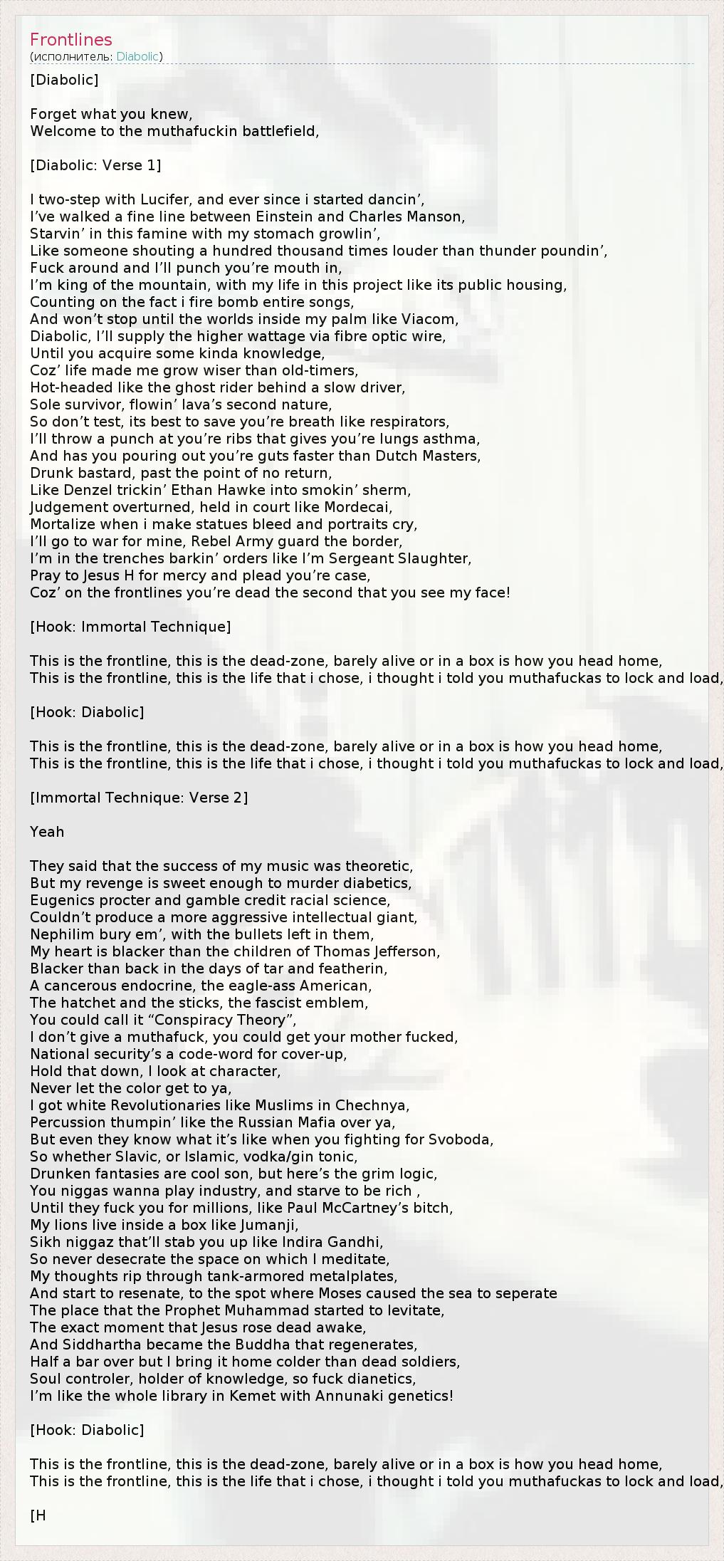 This is the frontline, this is the life that i chose, i thought i told you muthafuckas to lock and load,