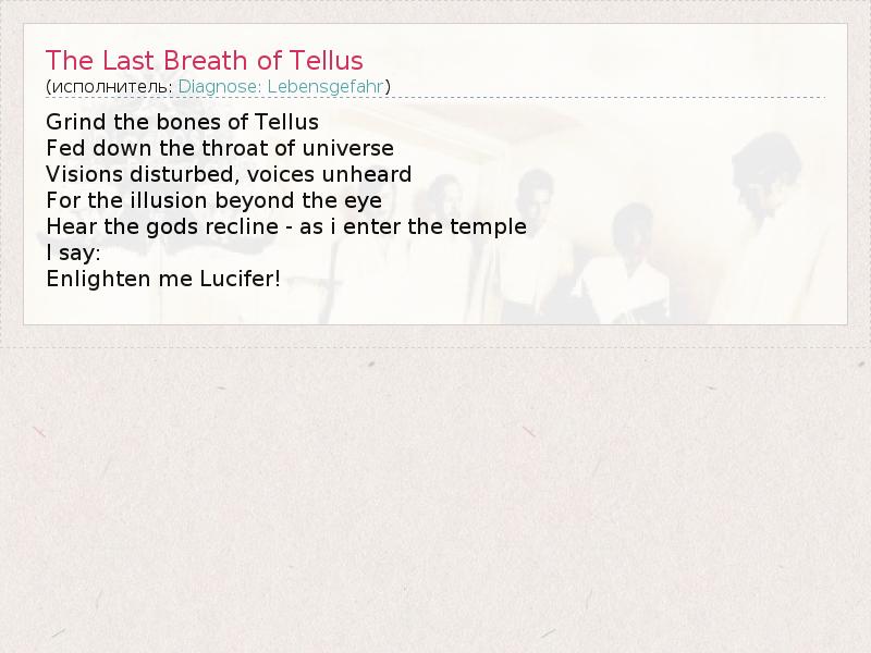 А как ты думаешь, о чем песня "The Last Breath of Tellus" ?