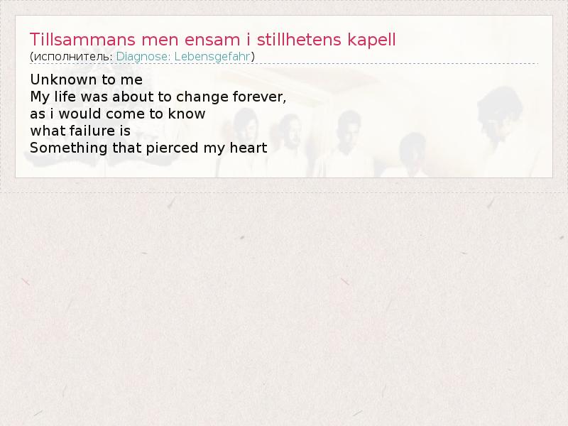 А как ты думаешь, о чем песня "Tillsammans men ensam i stillhetens kapell" ?