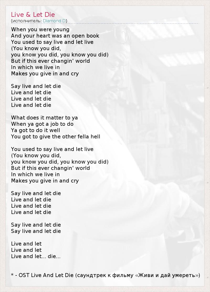 А как ты думаешь, о чем песня "Live & Let Die" ?