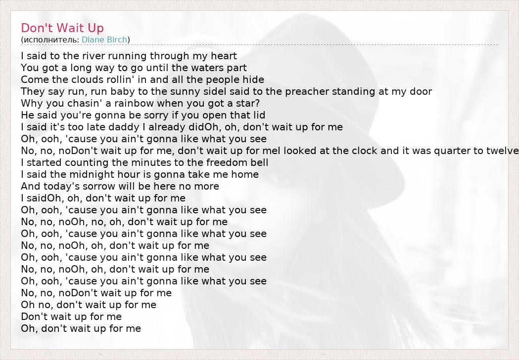А как ты думаешь, о чем песня "Don't Wait Up" ?