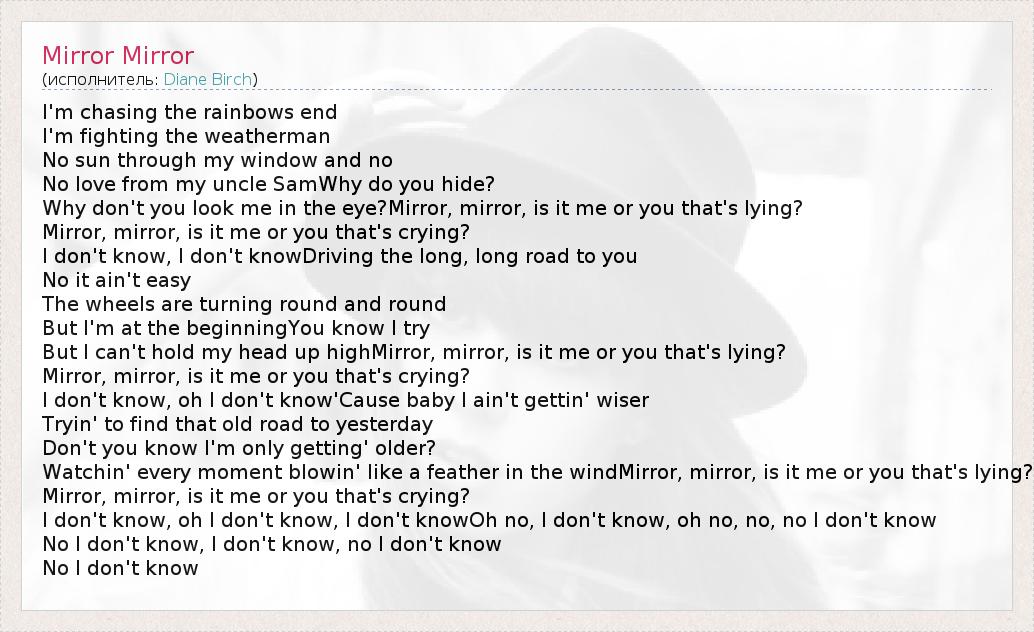 А как ты думаешь, о чем песня "Mirror Mirror" ?