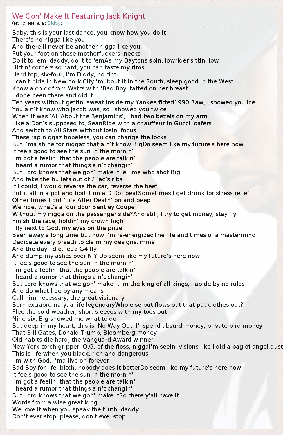 ГлавнаяИсполнителиDiddyWe Gon' Make It Featuring Jack Knight