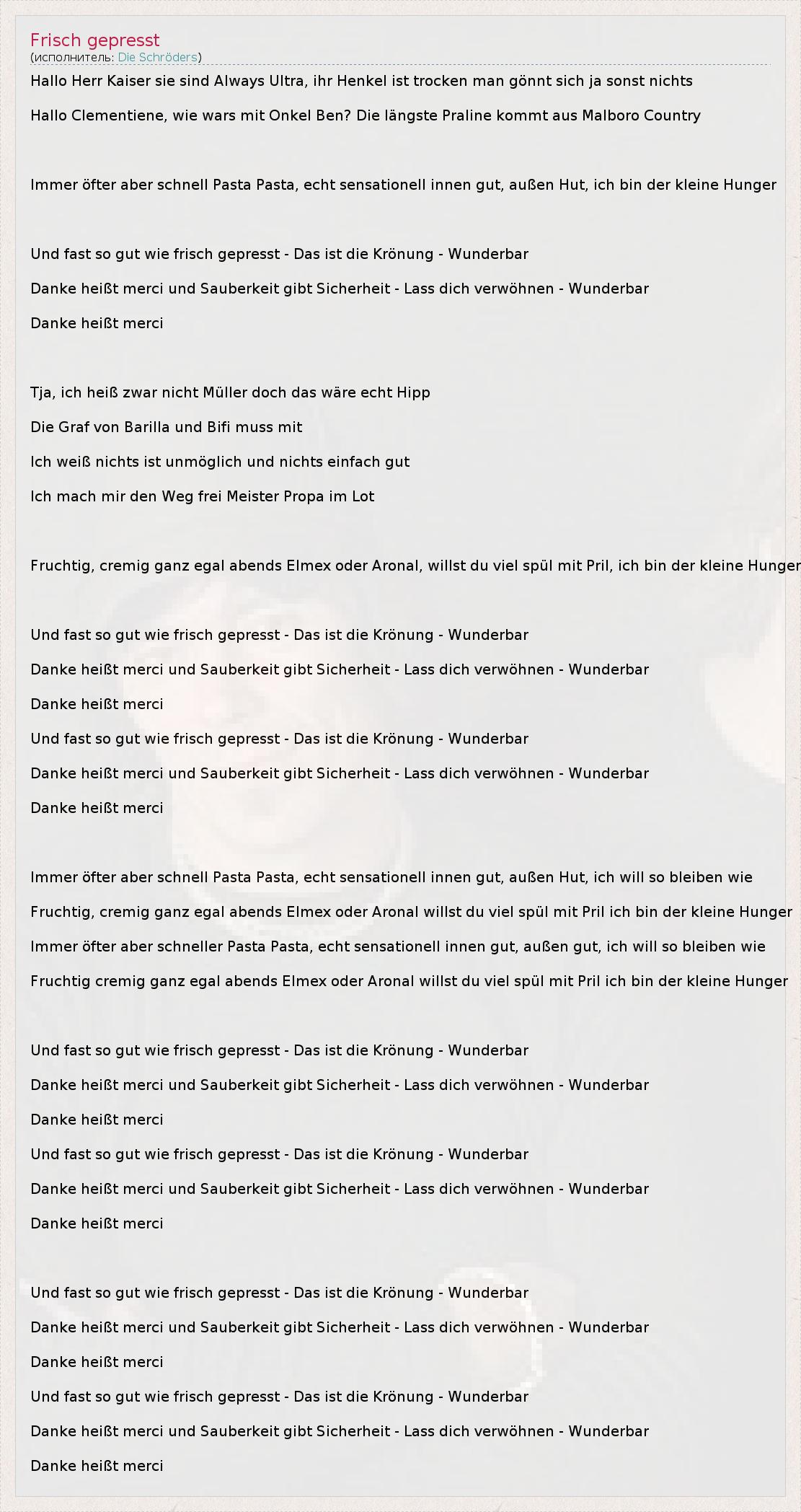 А как ты думаешь, о чем песня "Frisch gepresst" ?