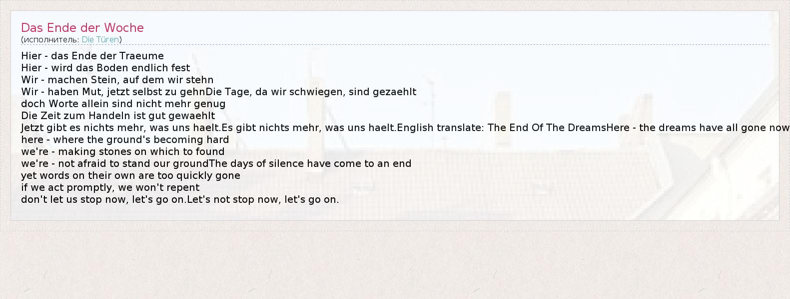 А как ты думаешь, о чем песня "Das Ende der Woche" ?