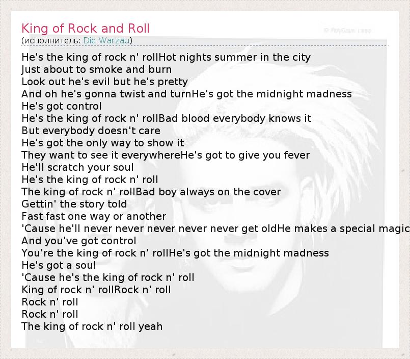 А как ты думаешь, о чем песня "King of Rock and Roll" ?