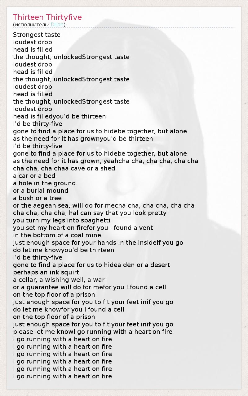 А как ты думаешь, о чем песня "Thirteen Thirtyfive" ?