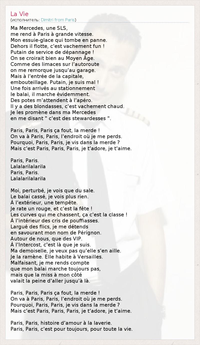 Но это Париж, Париж, Париж, я тебя обожаю, я тебя люблю.