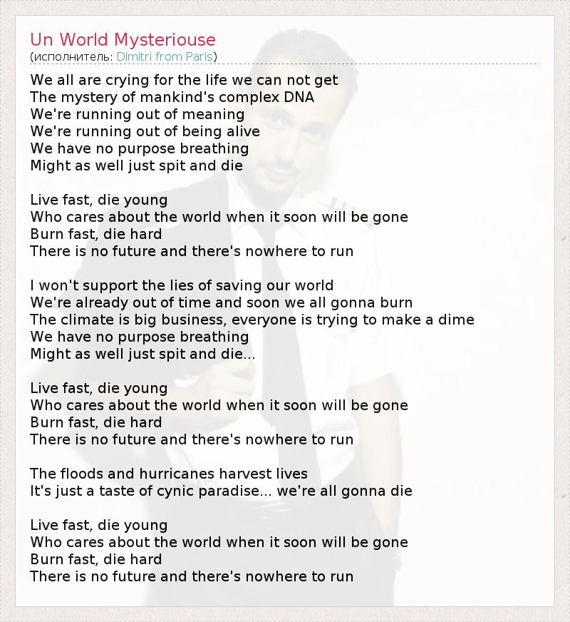 А как ты думаешь, о чем песня "Un World Mysteriouse" ?