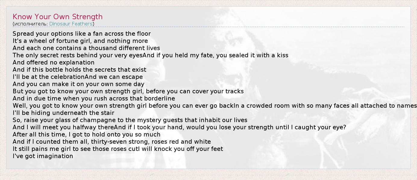 А как ты думаешь, о чем песня "Know Your Own Strength" ?