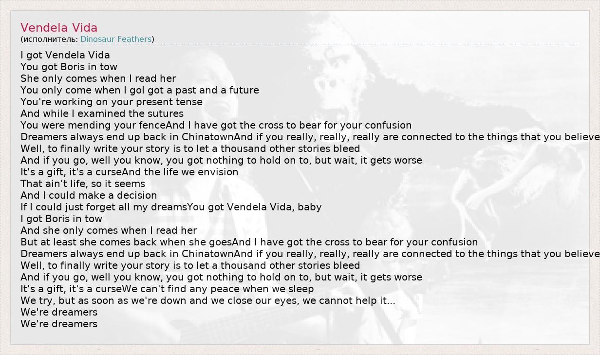 А как ты думаешь, о чем песня "Vendela Vida" ?