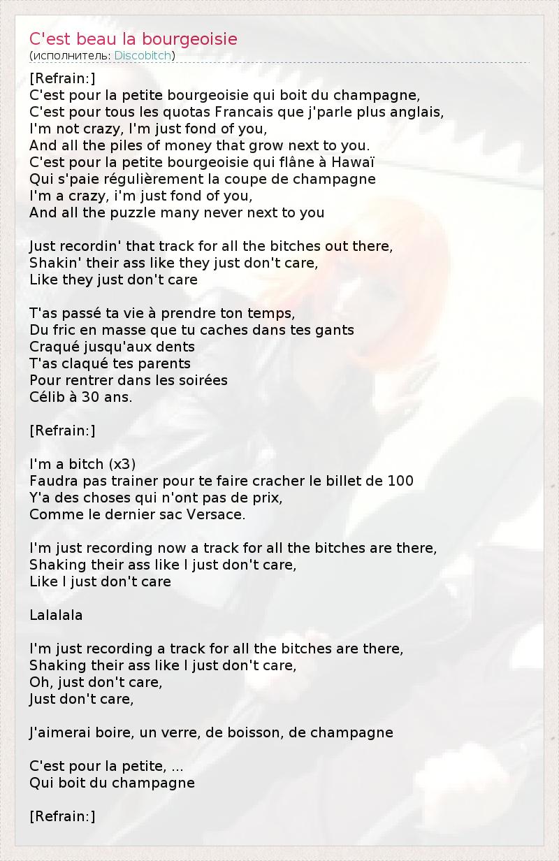 ГлавнаяИсполнителиDiscobitchC'est beau la bourgeoisie