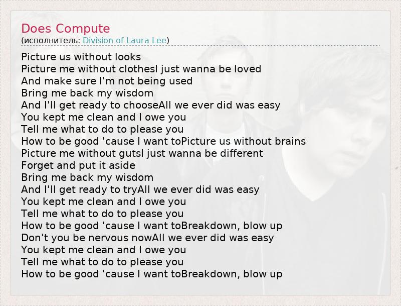 Это интересно:Division Of Laura Lee is a band of Swedish musicians/skateboarders originally from Vänersborg, Sweden heavily influenced by post-punk bands, britpop and the DC music scene (Dischord Records). The name comes from Laura Lee, a soul singer, and the phrase "Division Of" which was spotted on a cardboard box at their practice space. The band resides in Gothenburg, Sweden.In 2011 Division Of Laura Lee started working on a new album with Jason Lytle.Two of the founding members also play in Frantic Mantis.Members:Håkan Johansson: DrumsPer Stålberg: Guitar, VocalsJonas Gustafsson: Bass, VocalsDavid Fransson: Guitar, Vocals (2000–Present)Henrik... продолжение