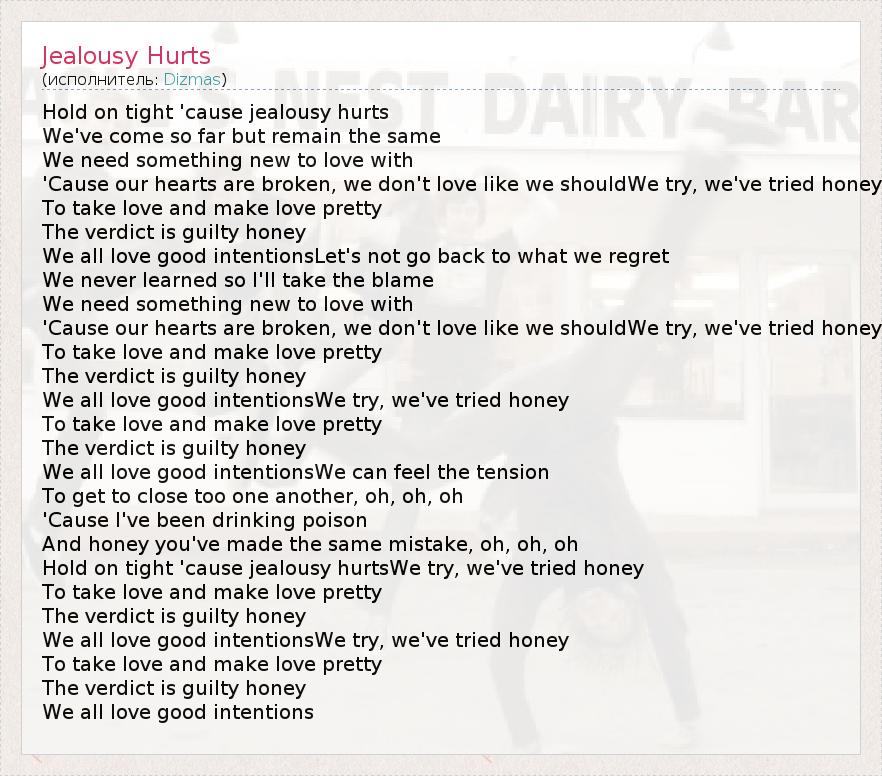 А как ты думаешь, о чем песня "Jealousy Hurts" ?