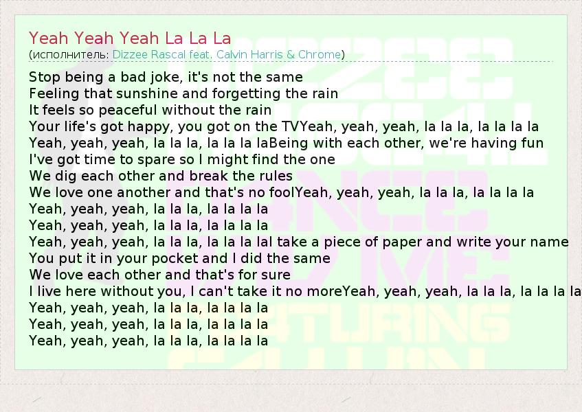 Yeah, yeah, yeah, la la la, la la la la