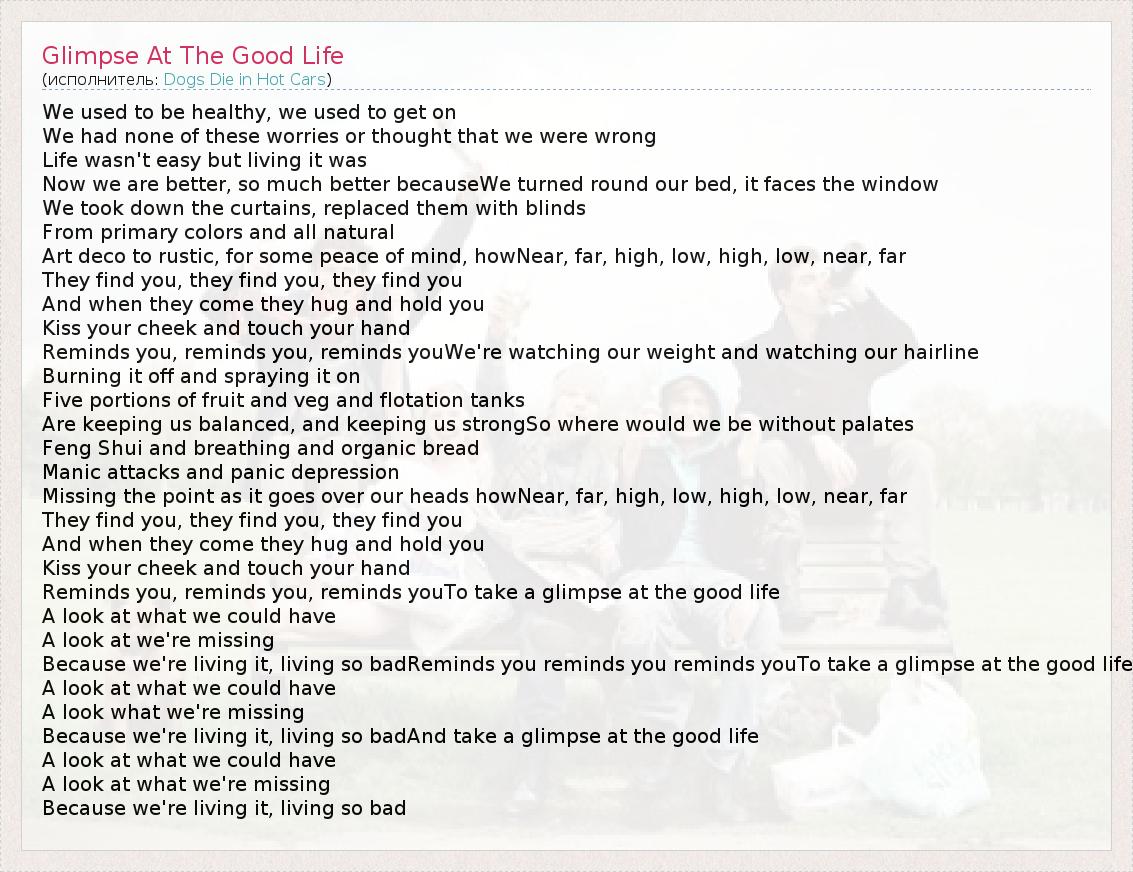 А как ты думаешь, о чем песня "Glimpse At The Good Life" ?