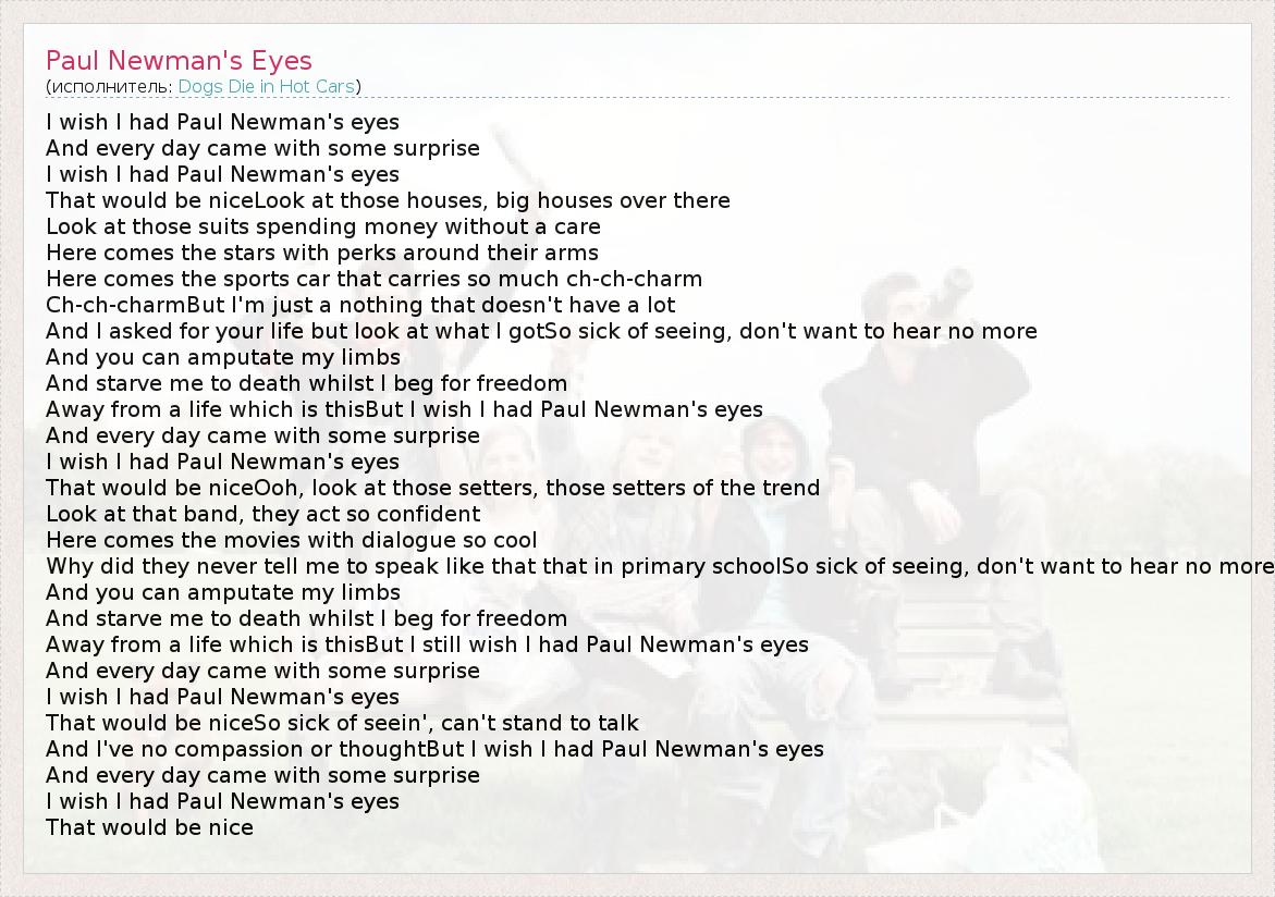 А как ты думаешь, о чем песня "Paul Newman's Eyes" ?