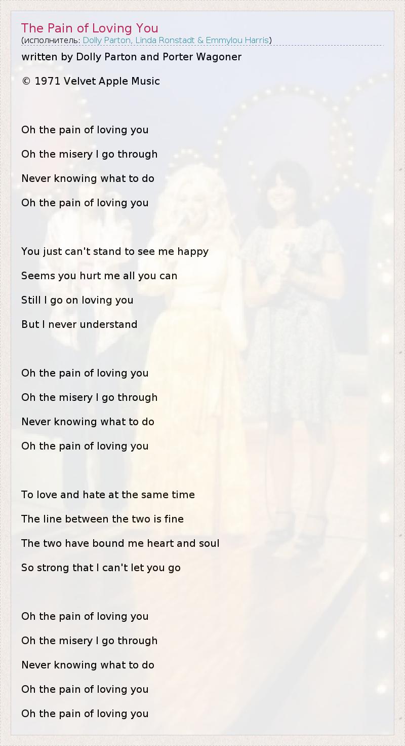 А как ты думаешь, о чем песня "The Pain of Loving You" ?