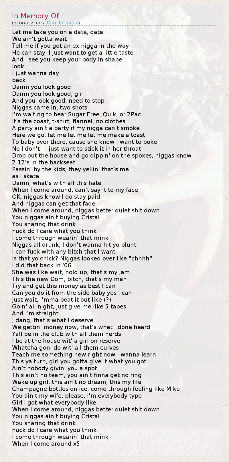 Это интересно:Dom Kennedy graced the streets of Los Angeles in 2008 with the release of his debut project, entitled 25th Hour. The Leimert Park native made a name for himself by performing at various events and venues including the popular Sneaker Pimps Tour and the world famous House of Blues. The amazing response to his live shows ignited his ambitions to distribute, promote and along with his cousin Jason Madison co-produce the 25th Hour mix-tape, which now stays in heavy rotation on Southern California play-lists. With his witty yet ingenious lyrics, Dom Kennedy has proven that he is not your average West Coast emcee… .. Dom can remember, at the age of 12, when he would listen to the great Hip-Hop records... продолжение