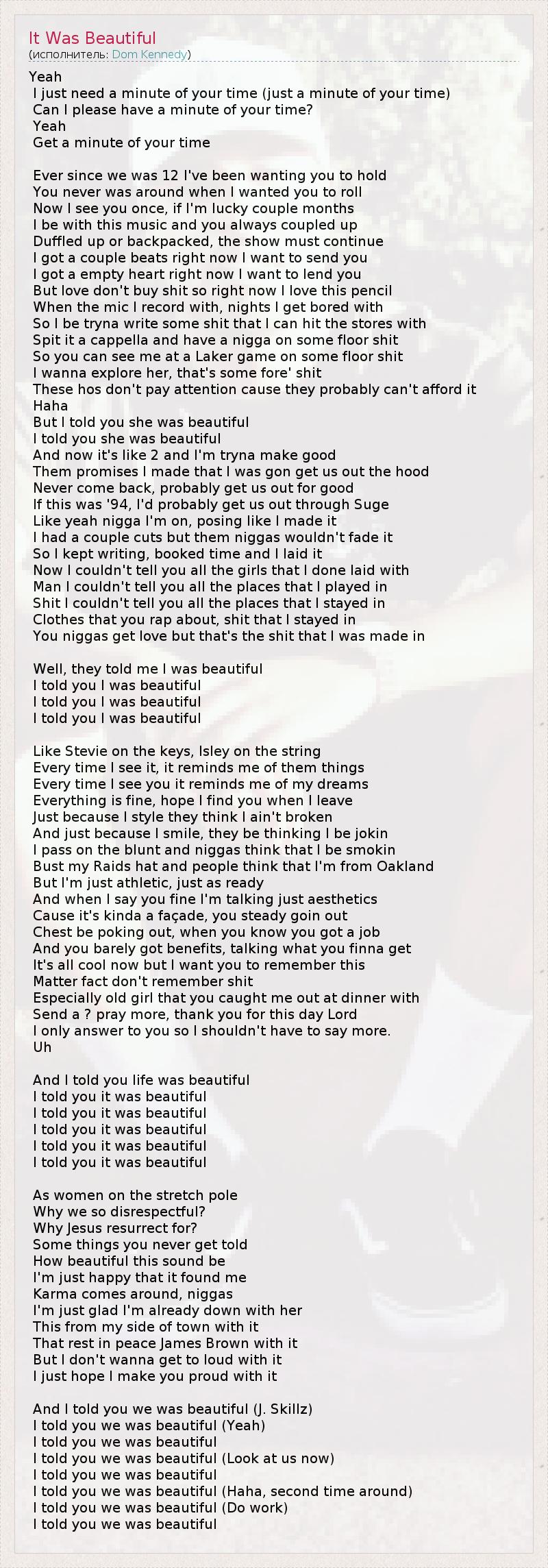 А как ты думаешь, о чем песня "It Was Beautiful" ?