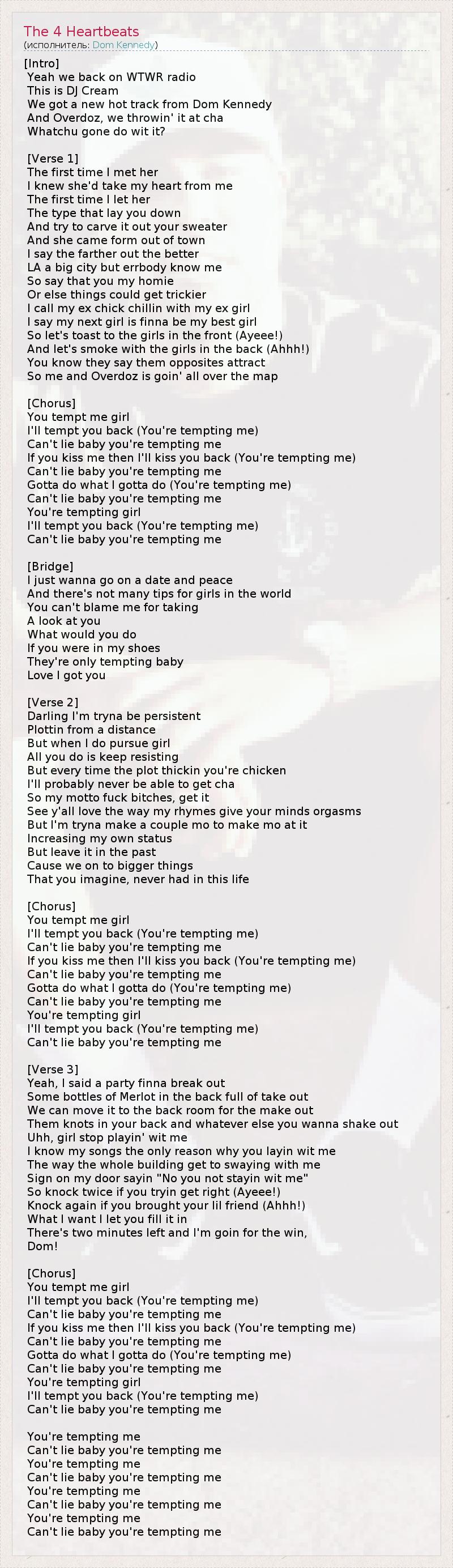 А как ты думаешь, о чем песня "The 4 Heartbeats" ?