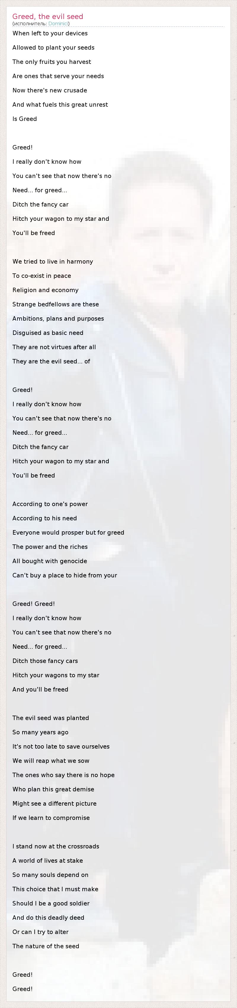 А как ты думаешь, о чем песня "Greed, the evil seed" ?