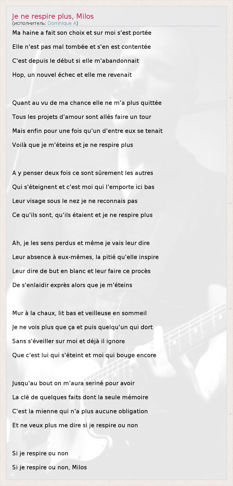 А как ты думаешь, о чем песня "Je ne respire plus, Milos" ?